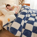 Yeknu Checkerboard Super Thick Warm Winter Blankets Soft Artificial Lamb Cashmere Weighted Blanket Fluffy Warmth Duvet Comforter Quilt