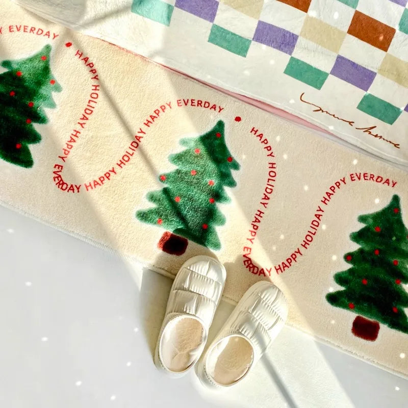 Yeknu Christmas Carpet Bedroom Bedside Carpets Holiday Cartoon Soft Fluffy Comfortable Imitation Cashmere Rug Balcony Long Strip Mat