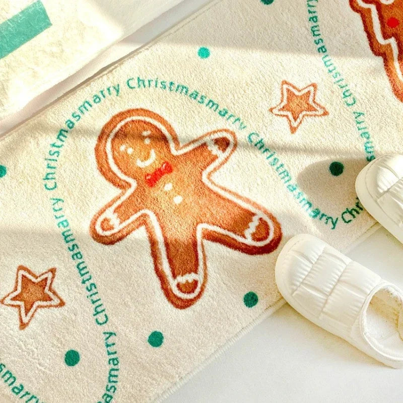 Yeknu Christmas Decoration Bedside Carpets Cute Cookie Man Christmas Tree Bedroom Long Carpet Cartoon Children Rug Plush Soft Rugs 양탄자
