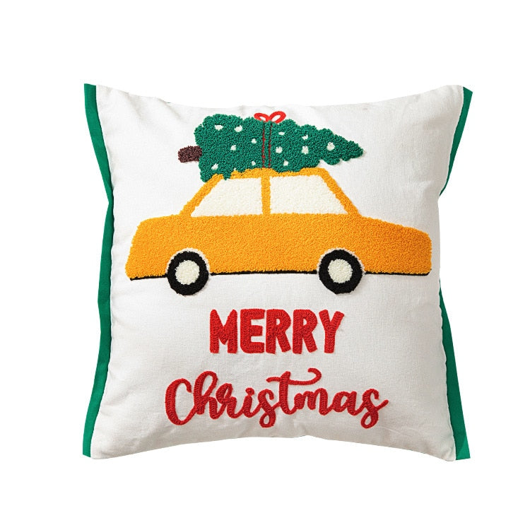 Yeknu Christmas Decoration Cushion Cover Santa Snowflake Pillow Case Cotton Square Embroidery Pillow Cover 45x45cm