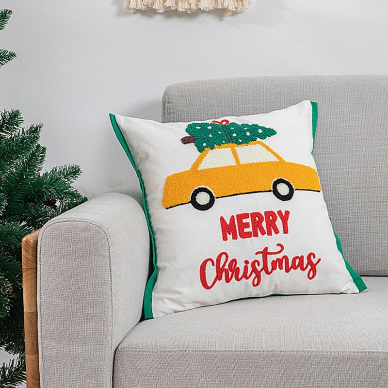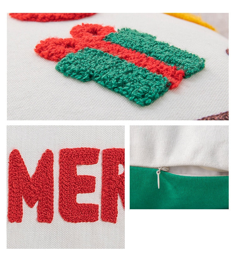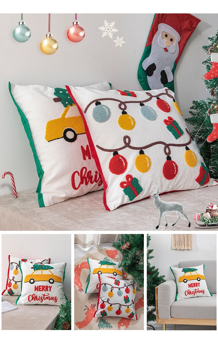 Use: Home Decor, Coffee Bar,Decor Embroidered Cushion Cover Christmas Tree Santa Snow Flower Pillow Case Cotton Square Embroidery Pillow Cover 45x45cm