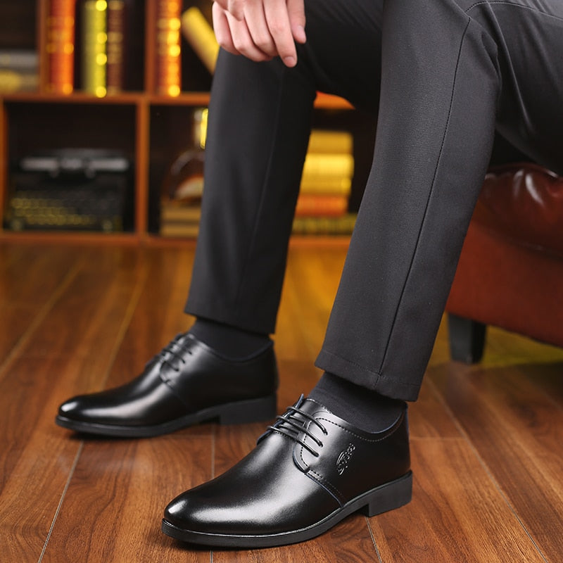 Yeknu Classic Business Dress Formal Black Men Oxford Wedding Footwear Leather Suits Breathable Casual Pointed Shoes 8222