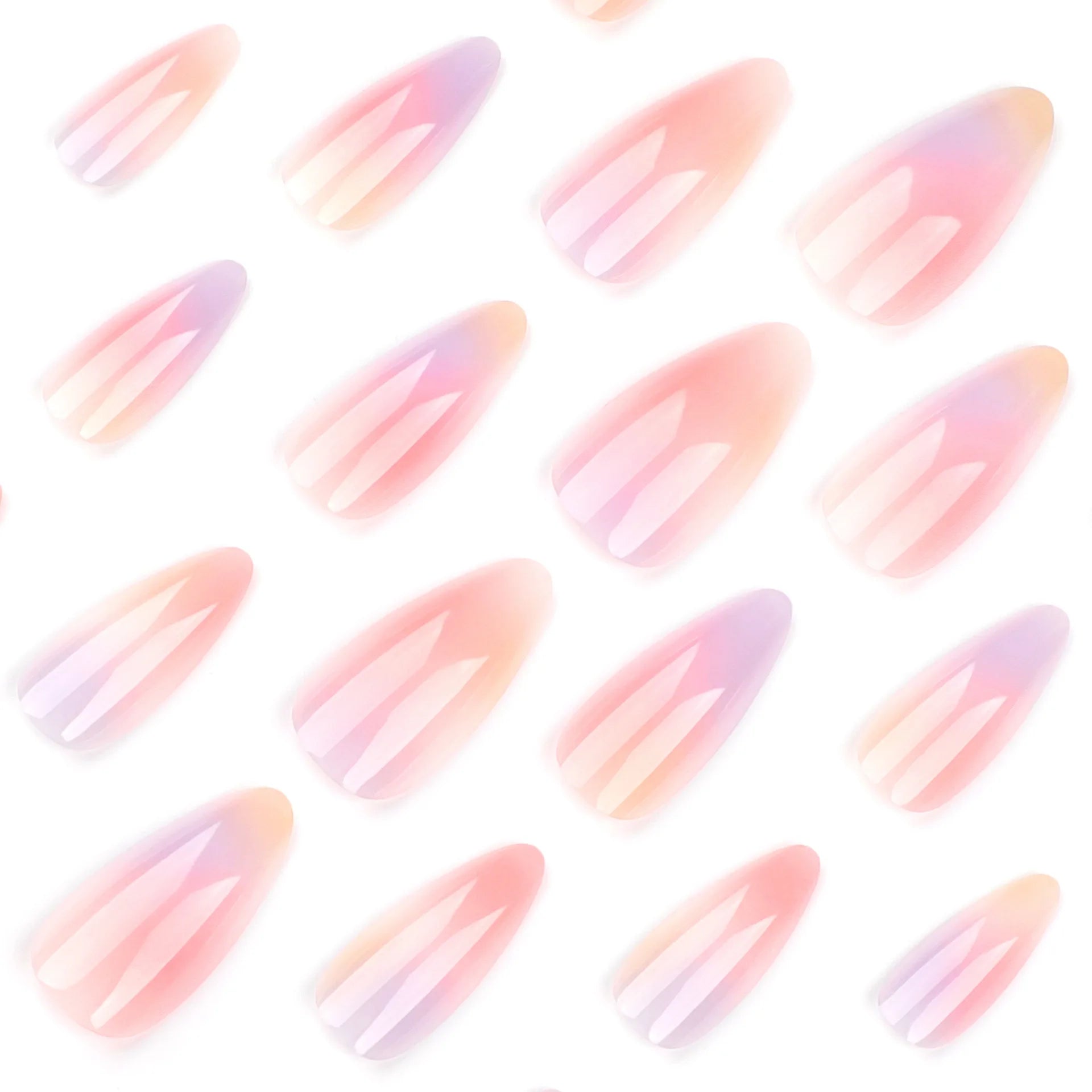 Yeknu Colored Halo Dyeing Wearable Nail Art Fashion Almond Shape Fake Nails Detachable Finished False Nails Press on Nails with Glue