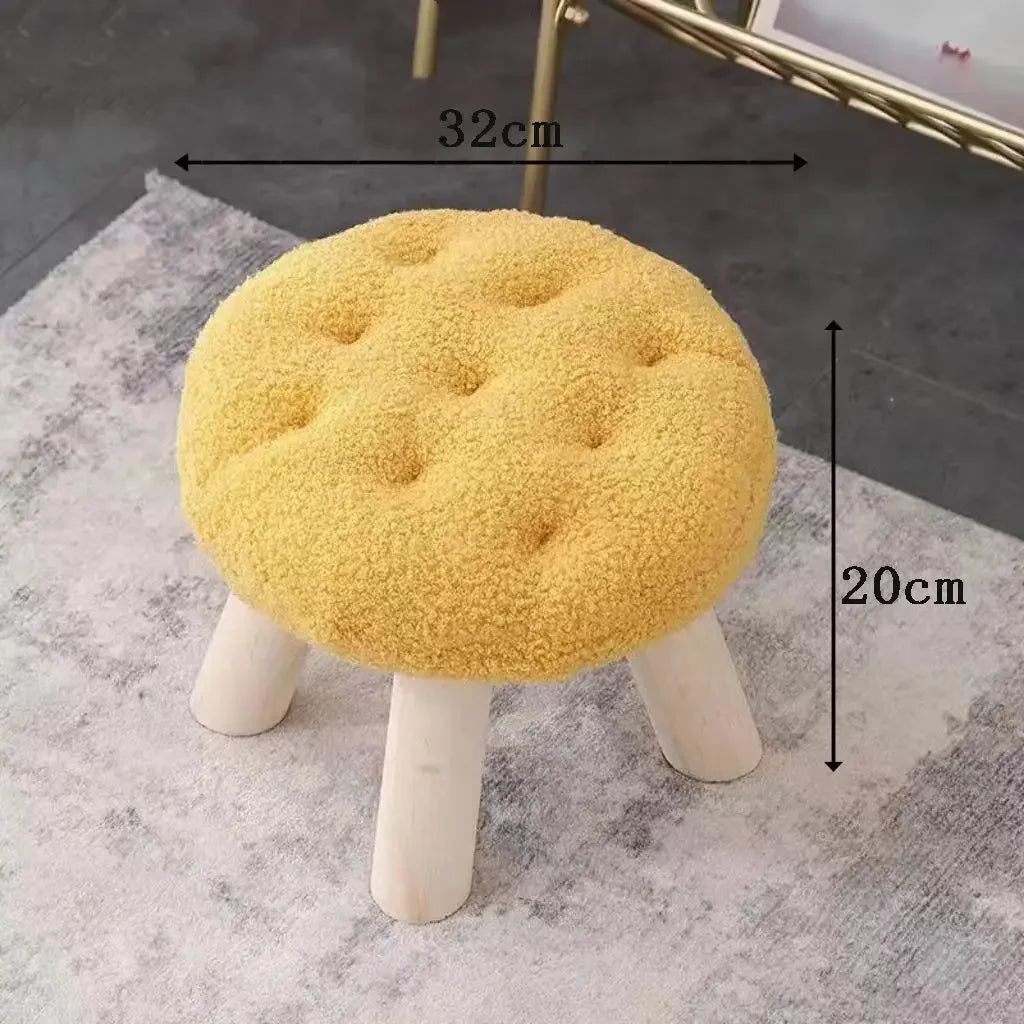 Yeknu Cookie Small Stool Soft Seat Chair Girlish Heart Bedroom Solid Wood Bench Lliving Room Kids Shoe Changing Stool Home Furniture