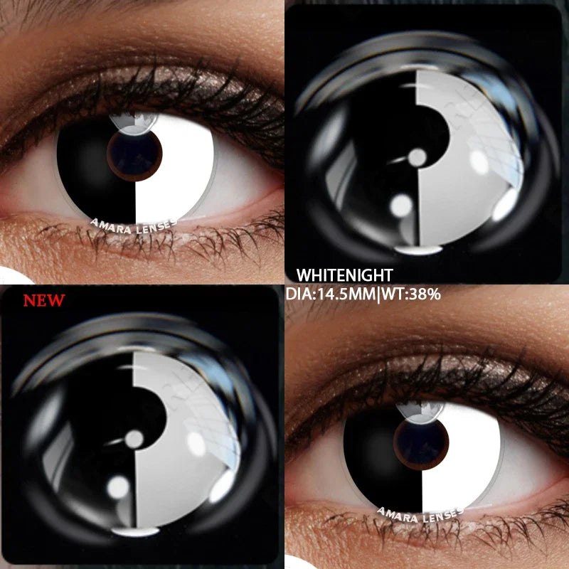 Yeknu Cosplay Color Contact Lenses for Eyes Anime Eye Lenses 1Pair White Black Lenses Contact Lens Cosmetic Color Lens Eyes