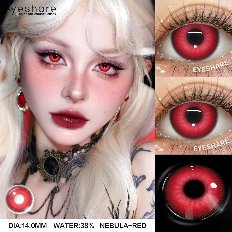 Yeknu Cosplay Color Contact Lenses for Halloween Vampire Red Contact Lens Anime Colored Eye Lenses Yearly Blue Contact Lenses