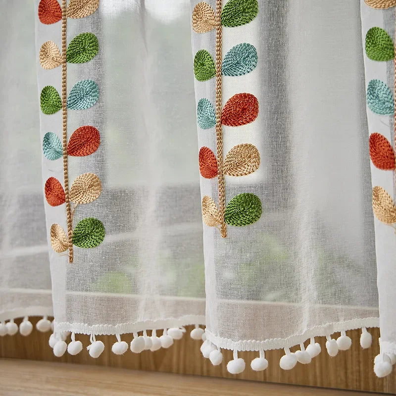 Yeknu Cotton Fashion Daisy Short Curtains Road Pocket Shade Floral Tassel For Kitchen Bedroom Living Room Bay Window Cabinet Curtain