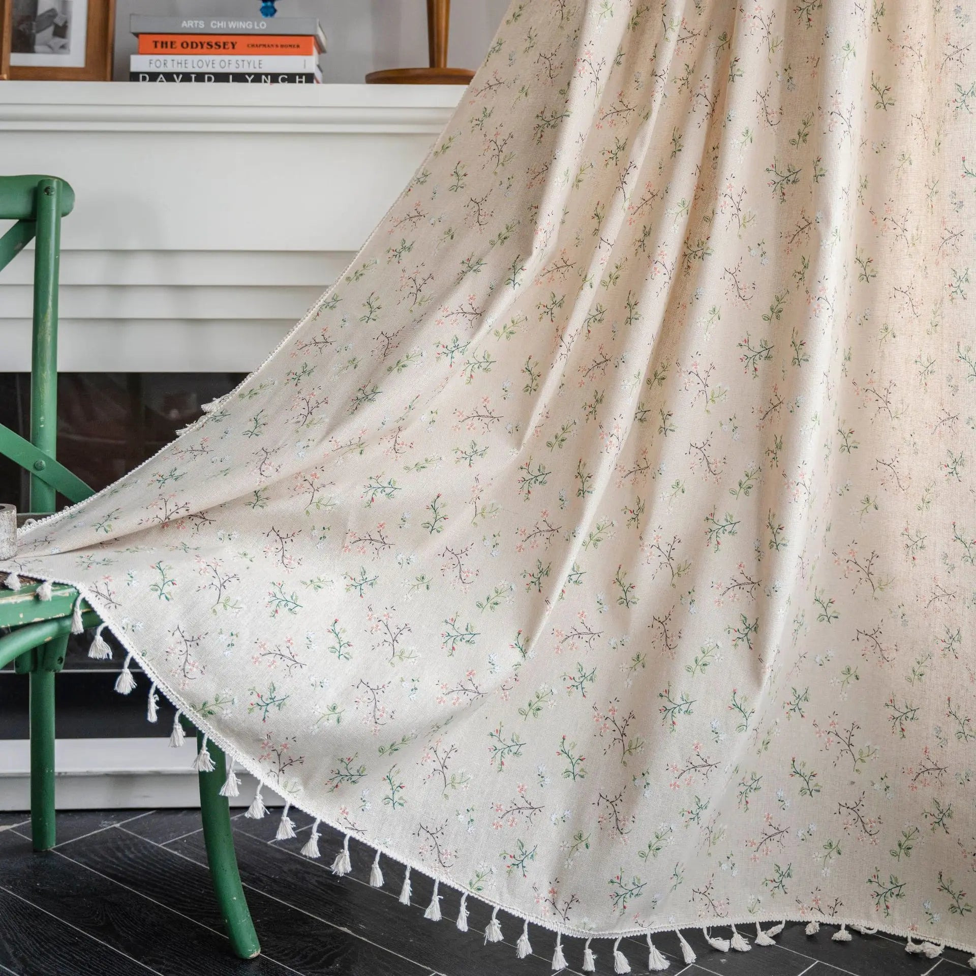 Yeknu Cotton Linen Blue Retro Orchid Curtains Floral Tassel for Kitchen Bedroom Living Room Bay Window Cabinet Curtain