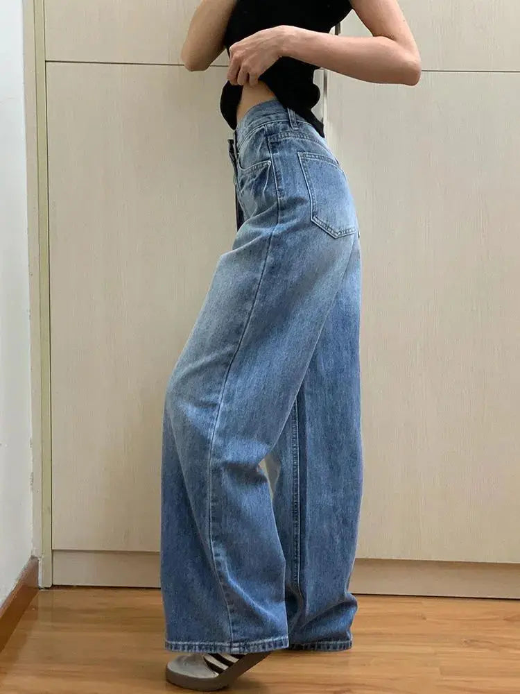 Yeknu Cowboy Pants for Woman Retro Blue Trousers Straight Leg High Waist Shot Women's Jeans Aesthetic Vibrant New in Teenagers Pant A