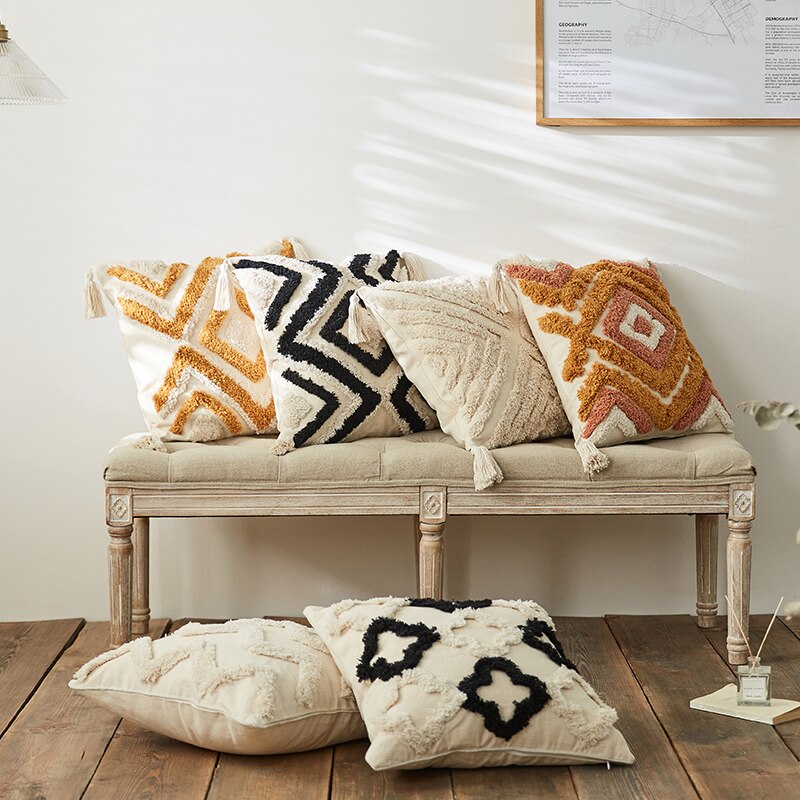 Yeknu Cushion Cover Pillow Cover 45x45cm Moroccan Style Diamond Zigzag Handmade Decoration Living Room Bed Room