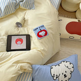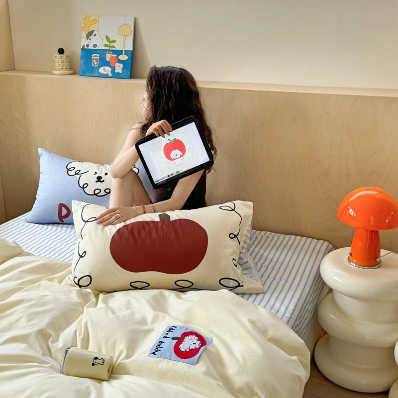 Yeknu Cute Pup Print 100% Washed Cotton Bedding Set Pure Cotton Skin-friendly Duvet Cover Set with Sheet Soft Comfortable Quilt Covers