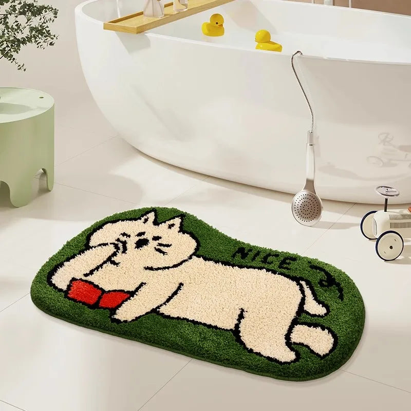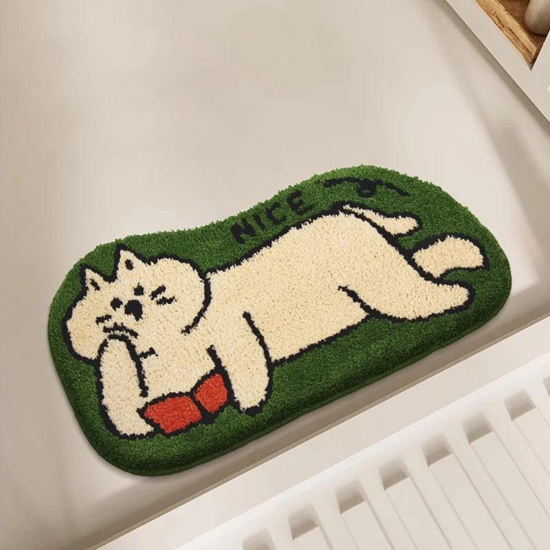 Yeknu Cute Tufting Cat Dog Bathroom Mat Cartoon Bathmat Rug Carpet Entrance Doormat Floor Anti Slip Pad Aesthetic Home Decor 40x70cm