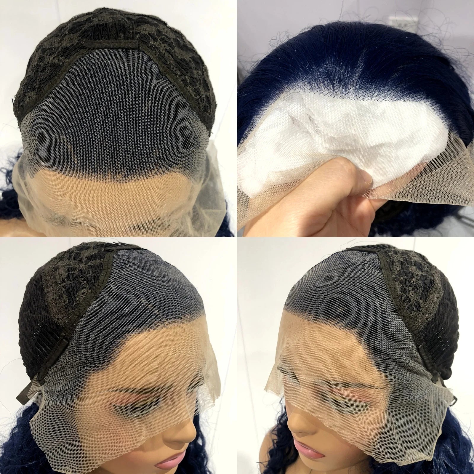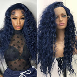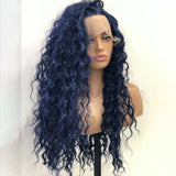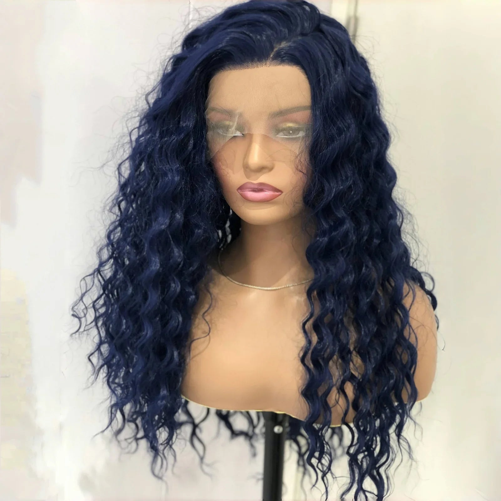 Yeknu Dark Blue Curly Synthetic Lace Front Wig Natural Afro Long Deep Wave Hair Colored 13X4 Frontal Kinky Curly Wigs for Women Party