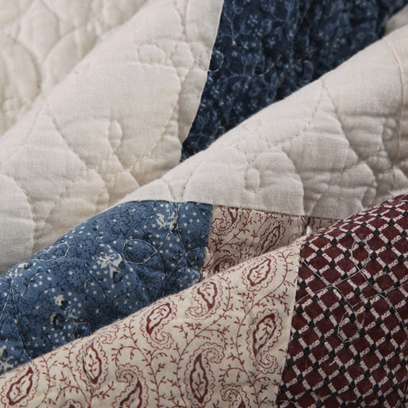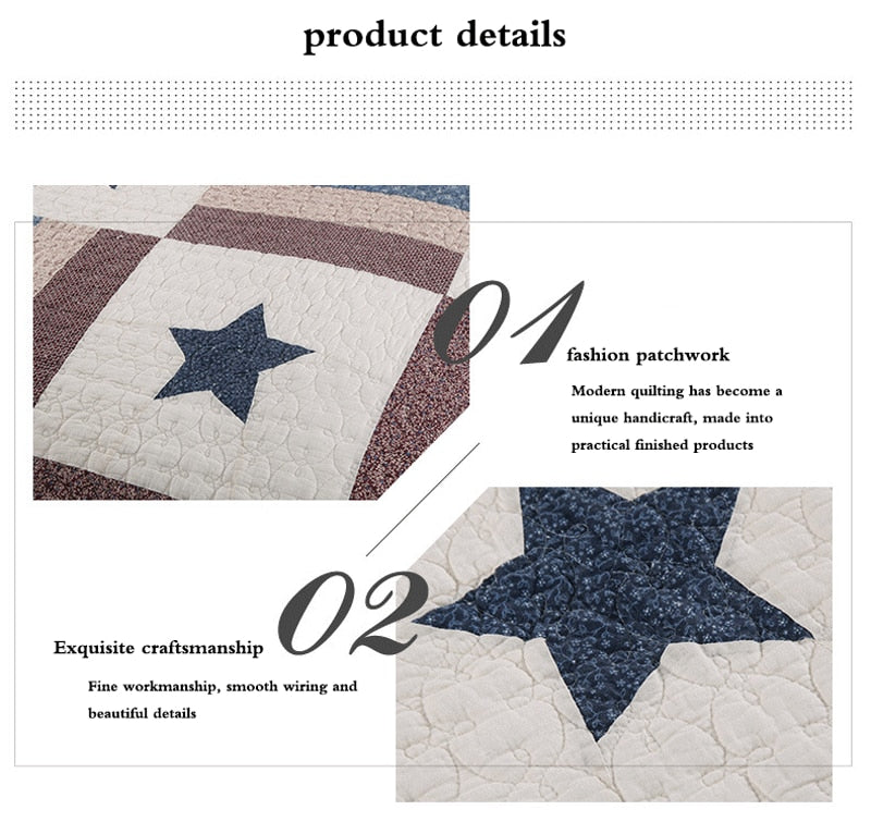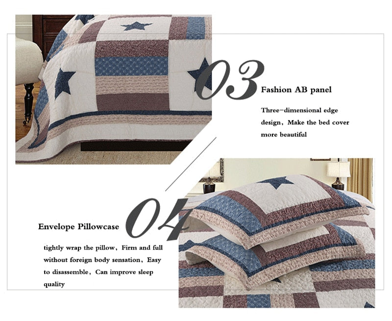 Yeknu Double Bed Cotton Printed Patchwork Pentagram Set Of 3 Quilted Quilt Light Quilt Pillowcase
