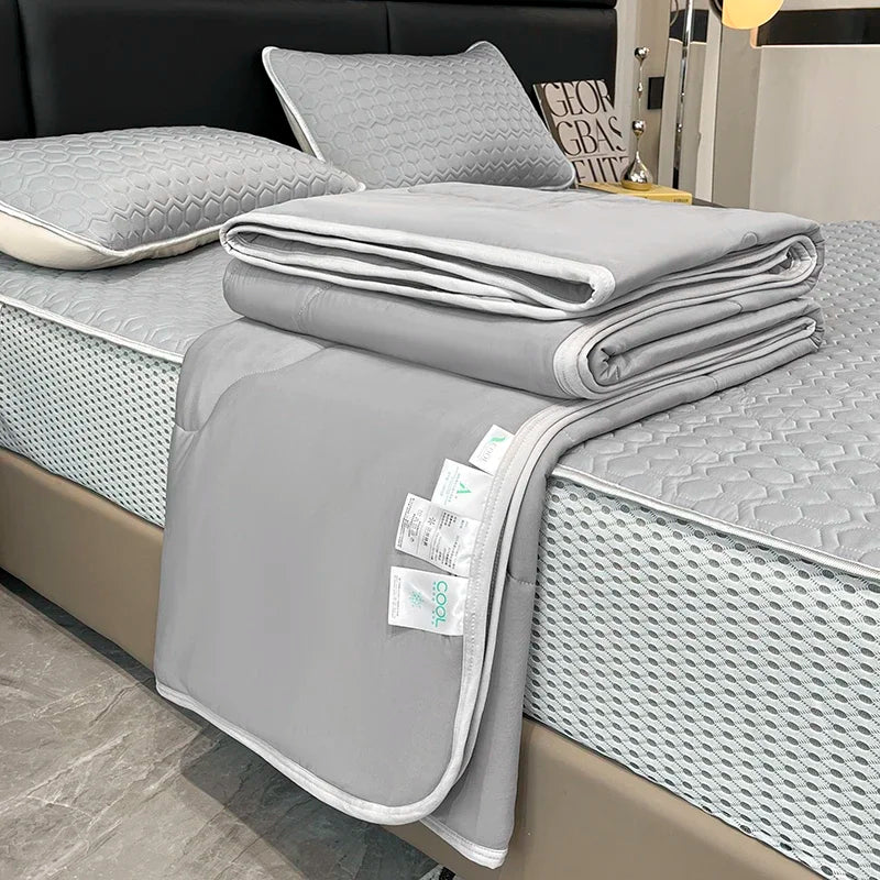 Yeknu Double-sided Cool Feeling Summer Quilt Set Queen Smooth Ice Silk Cooling Blanket Summer Comforter Fitted Sheet and Pillowcase