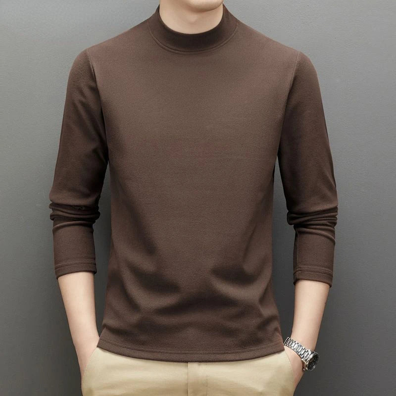 Yeknu Double-sided Velvet Half Turtleneck T-shirt for Men Long Sleeve New Winter Solid Color Warm Thermal Shirt Bottoming T-shirt
