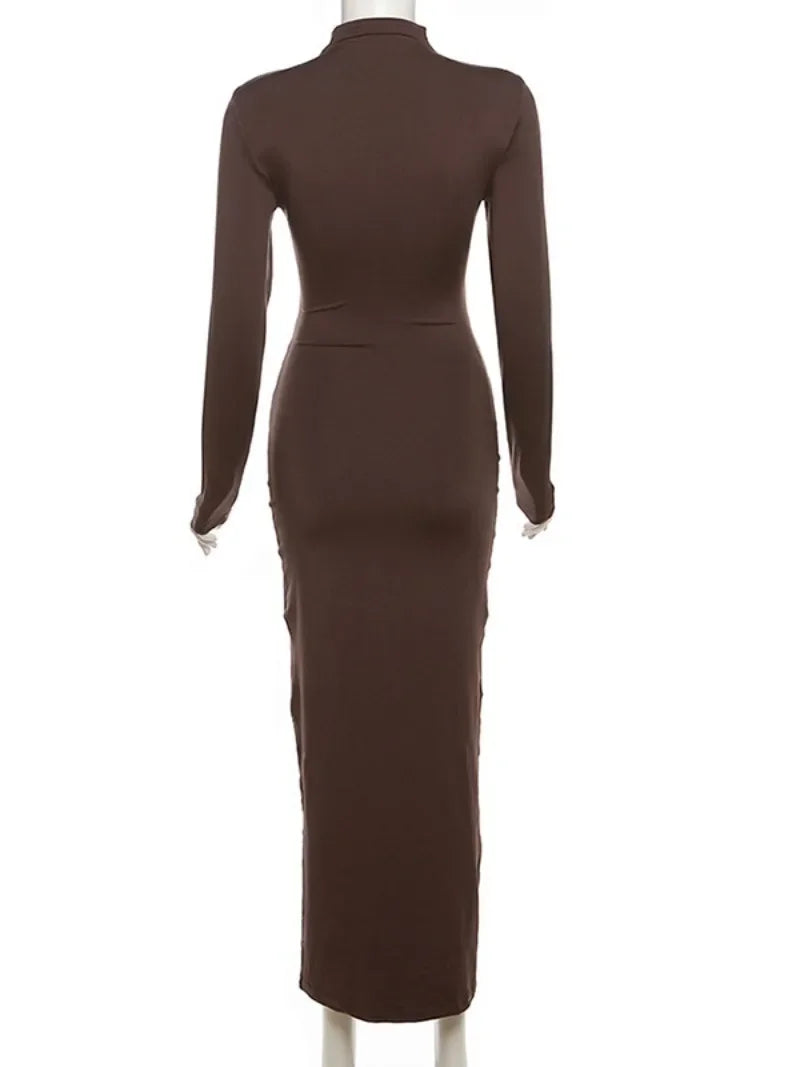 Yeknu Elegant Fashion Women's Long Sleeve Hollow Out Folds Long Dress 2024 Fall Winter Ladies Tunics High Waist Bodycon Party Dresses