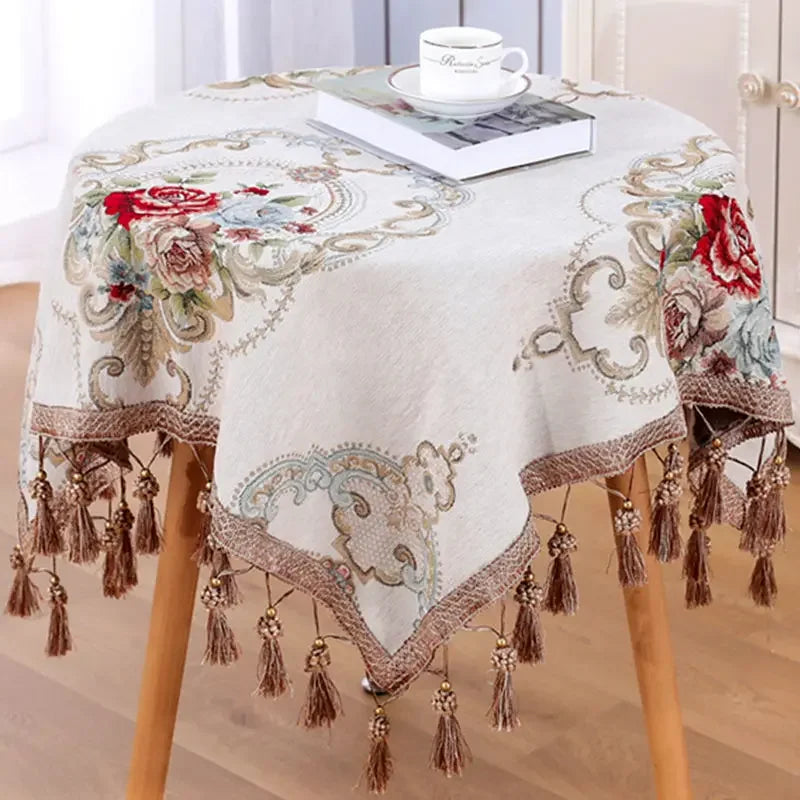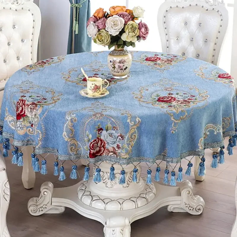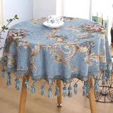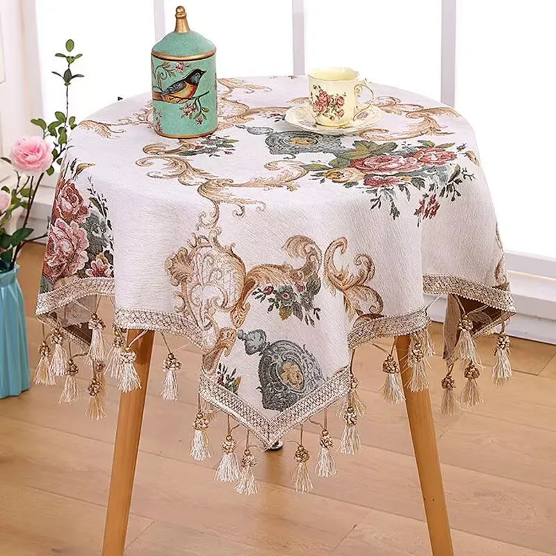 Yeknu European Round Tablecloth High Grade Upscale Jacquard Tablecloth Rectangular Tassel Coffee Table Cloth Bedside Table Cover Cloth