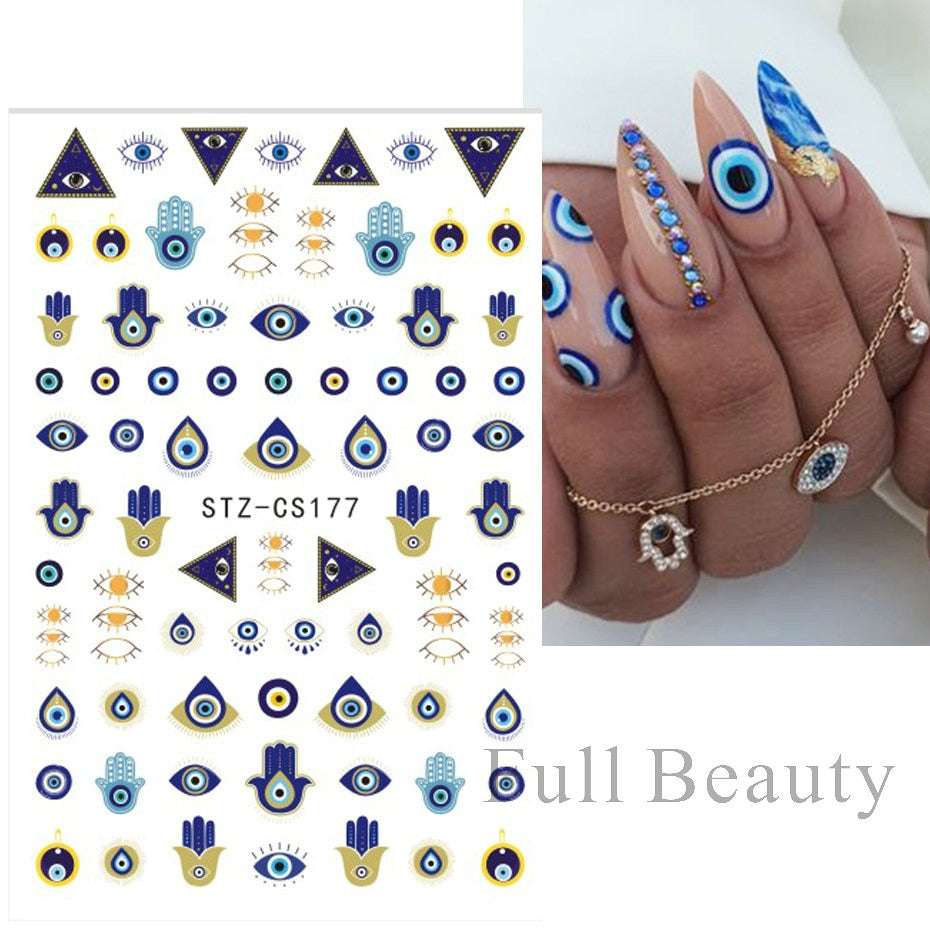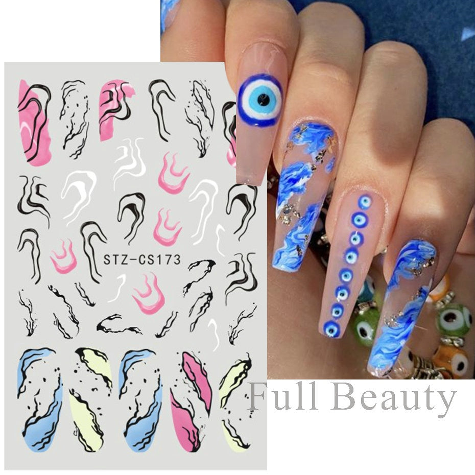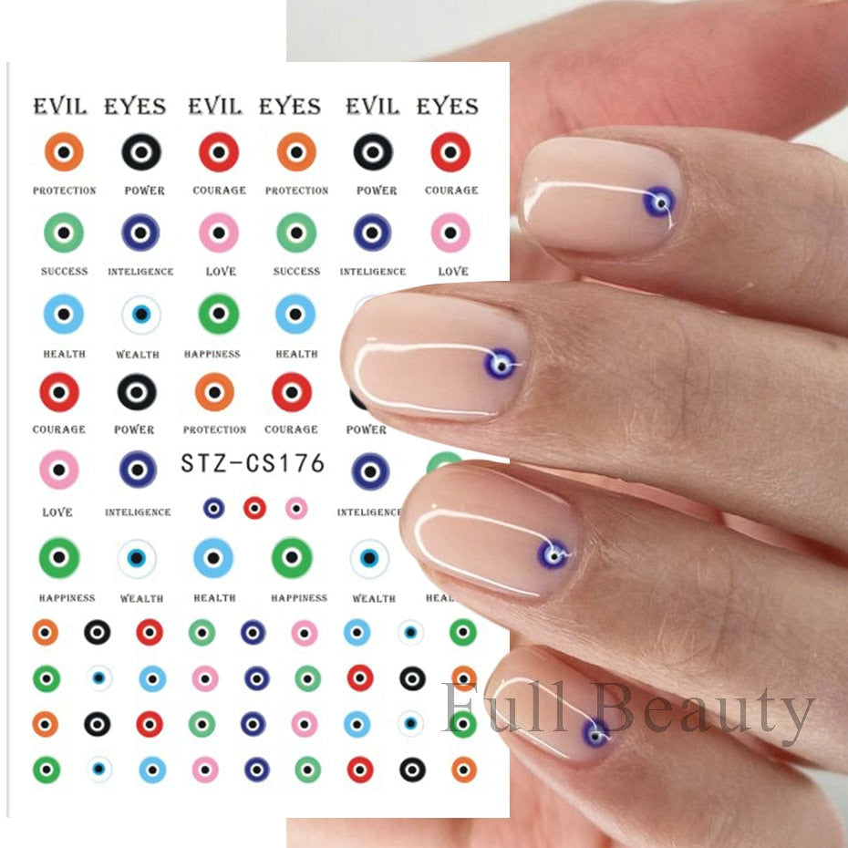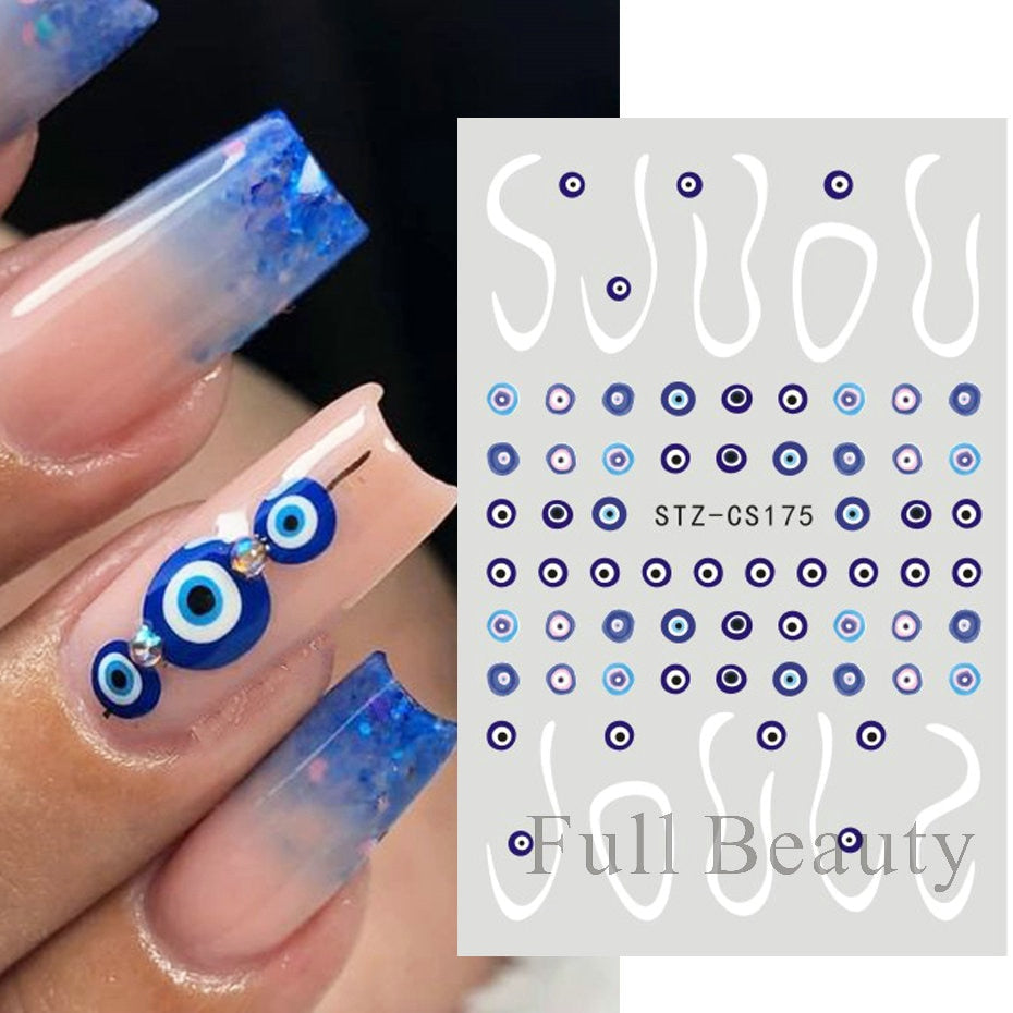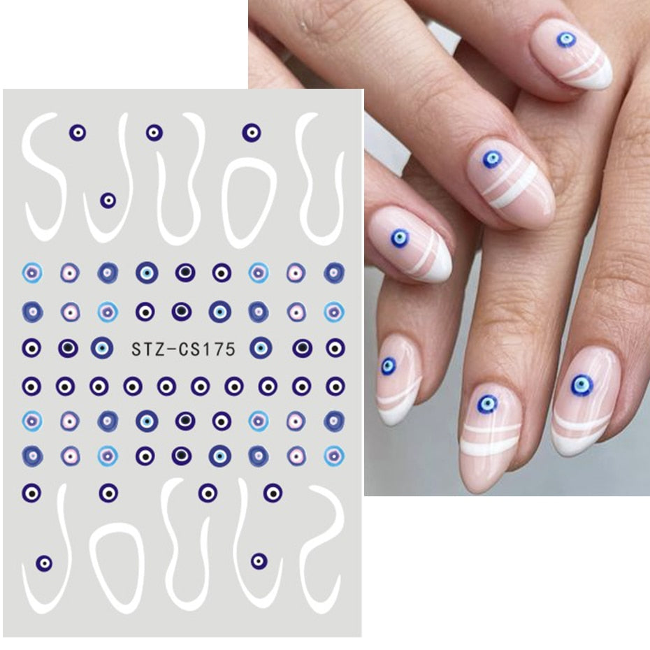 Yeknu Evil Eye Nail Art Stickers Swirl Stripe Wave Lines Health Love Success Protection Meaning Manicure Foil Slider Decor NFSTZ-CS175