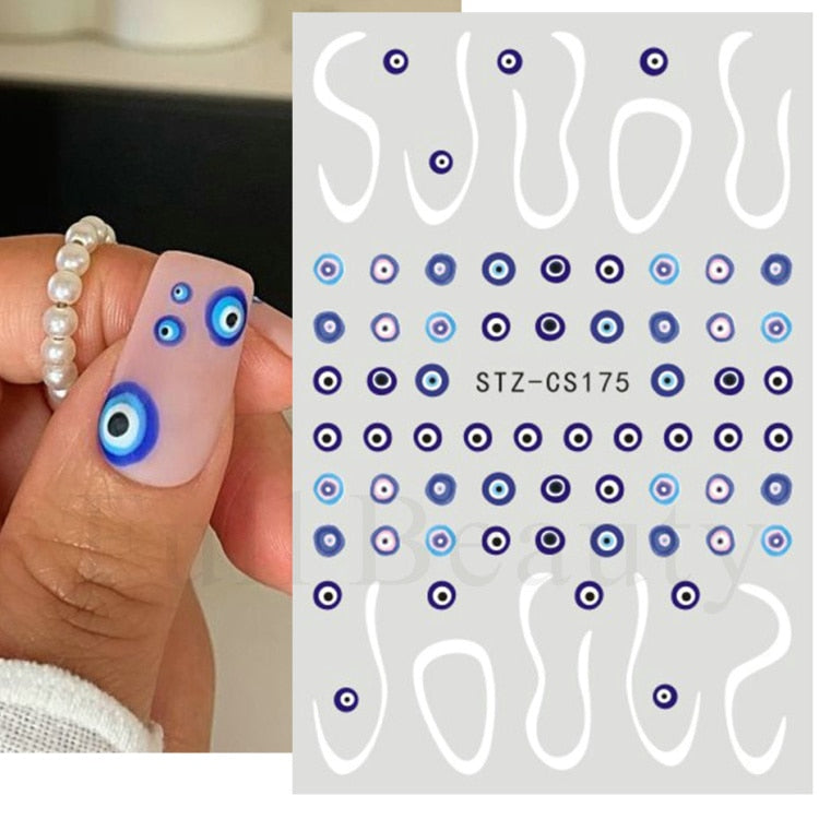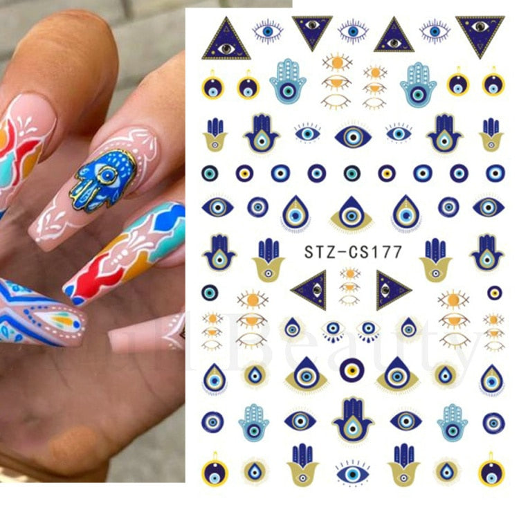 Yeknu Evil Eye Stickers on Nails Hamsa Hand Art 3D Slider Vector Set Eyes Symbol Manicure Decals Self-Adhesive Foil Decors CHSTZCS177