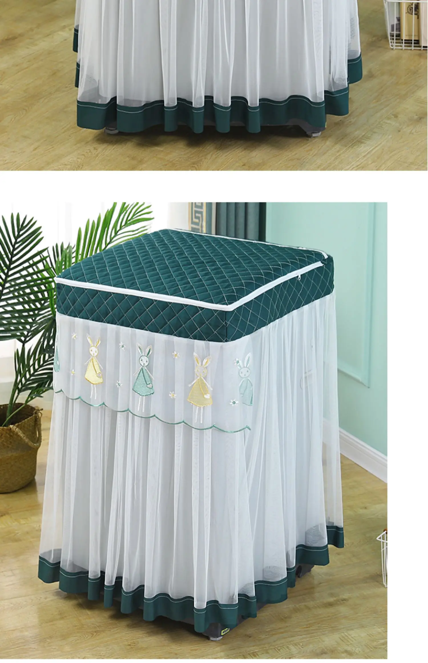 Yeknu Fabric Fully Automatic Upper Cover Washing Machine Cover New Lace Dust Cover White Universal Washing Machine Cover