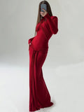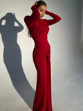 Yeknu Fashion Bandage Tie Knot Tunics Long Dresses for Women 2024 Elegant Chic High Waist Bodycon Long Sleeve Red Party Evening Dress