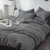 Yeknu Fashion Bedding Set White Green Double Bed Linens Nordic Duvet Cover Pillowcase Queen Size Flat Sheet Classic Grid Kids Winter