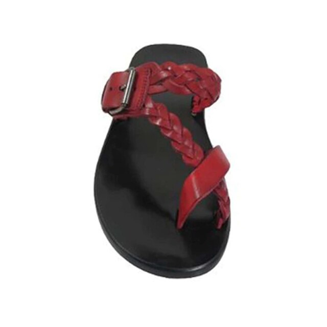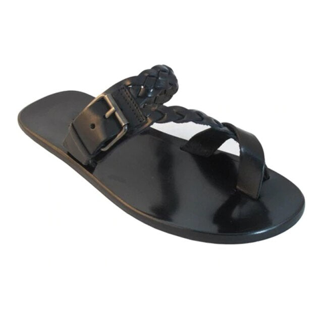 Yeknu Flat Bottom Roman Men's Sandals Open-toe Woven Leather Sandals Retro Beach solid color Casual Sandals summer fashion men shoes