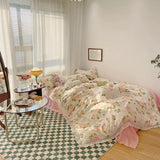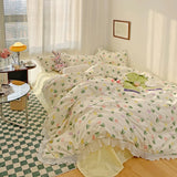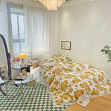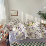 Yeknu Floral Style 100% Cotton Printed Soft Bedding Set Duvet Cover Bedclothes Bedspread Pillowcase Flat Sheets Comforter Set for Girl