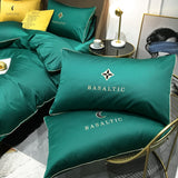 Yeknu Four-piece bedding light luxury cotton double household bed sheet quilt cover embroidered little bee fashion bedding green