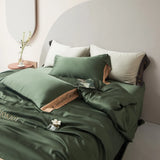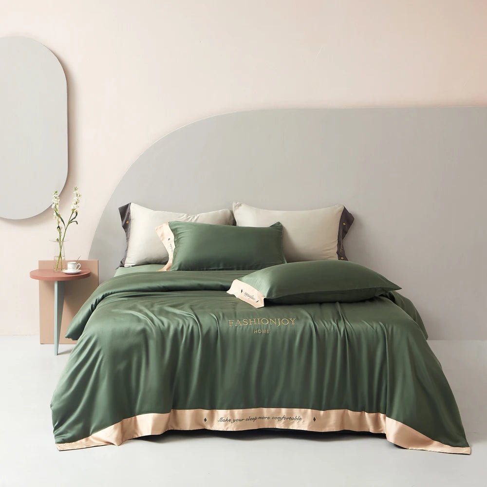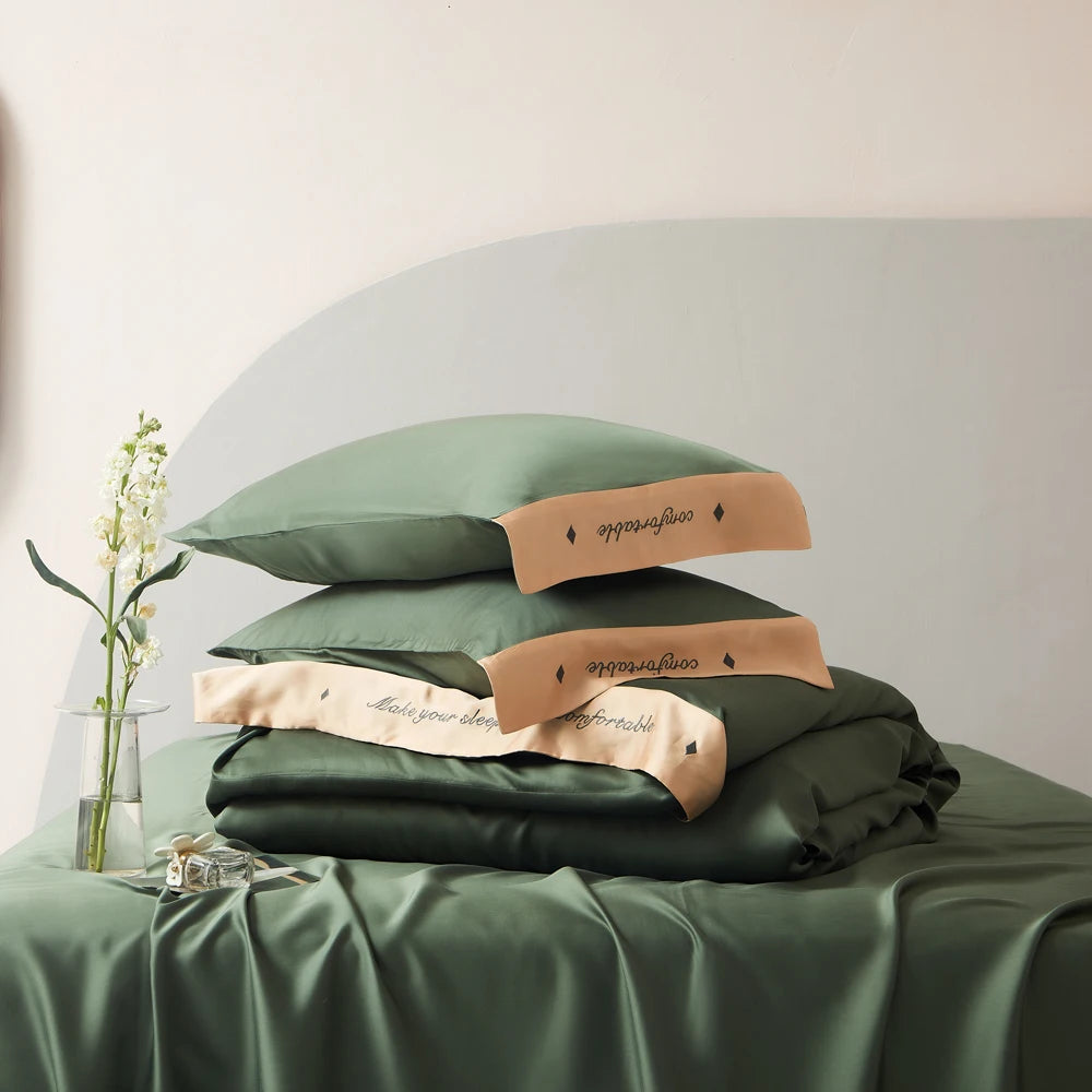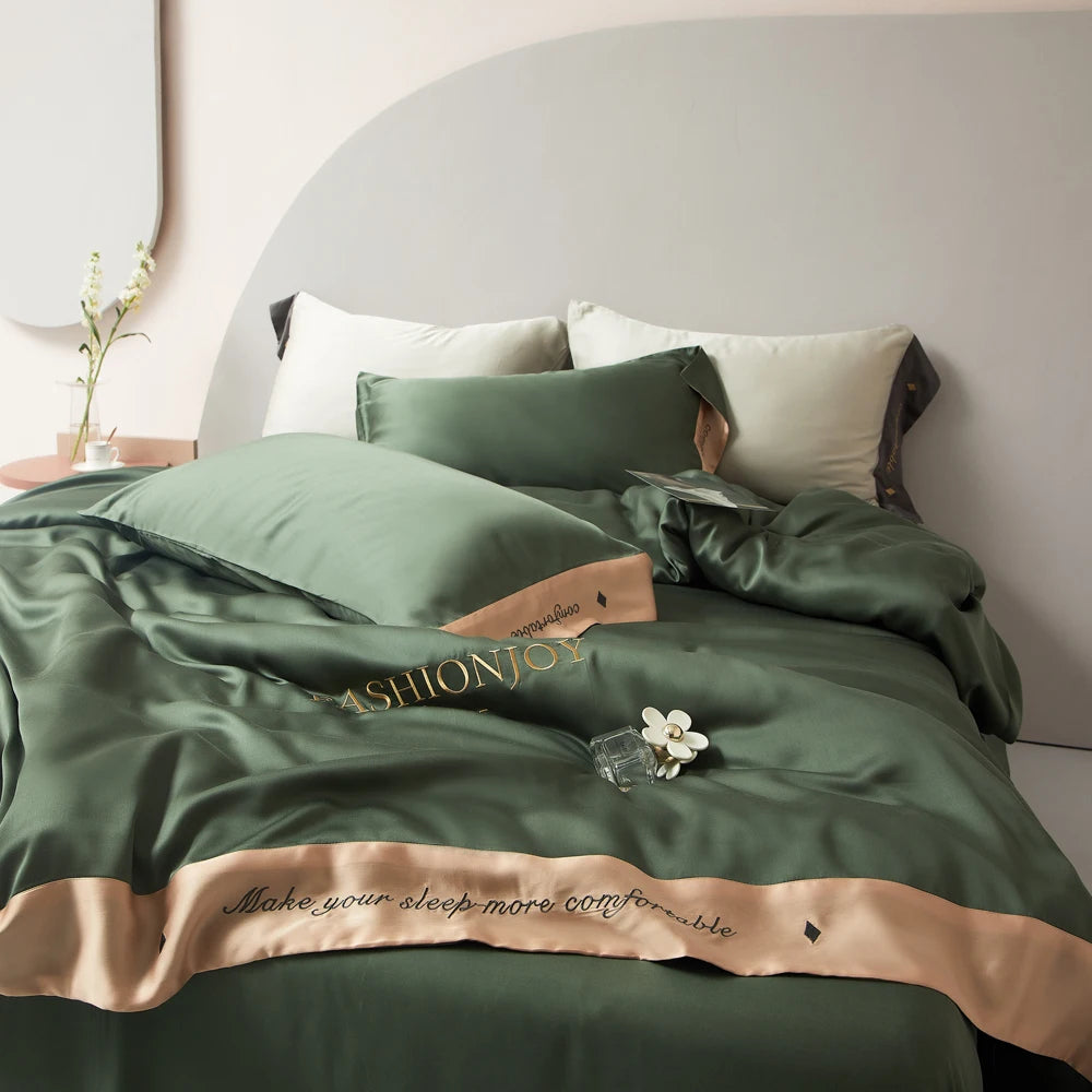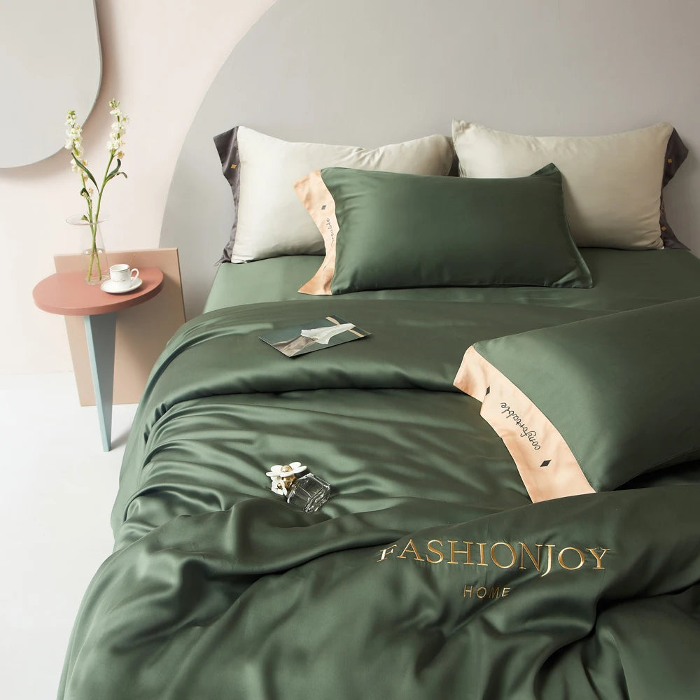 Yeknu four-piece bedding simple cotton double household bed sheet quilt cover embroidered twill comfortable bedding dark green