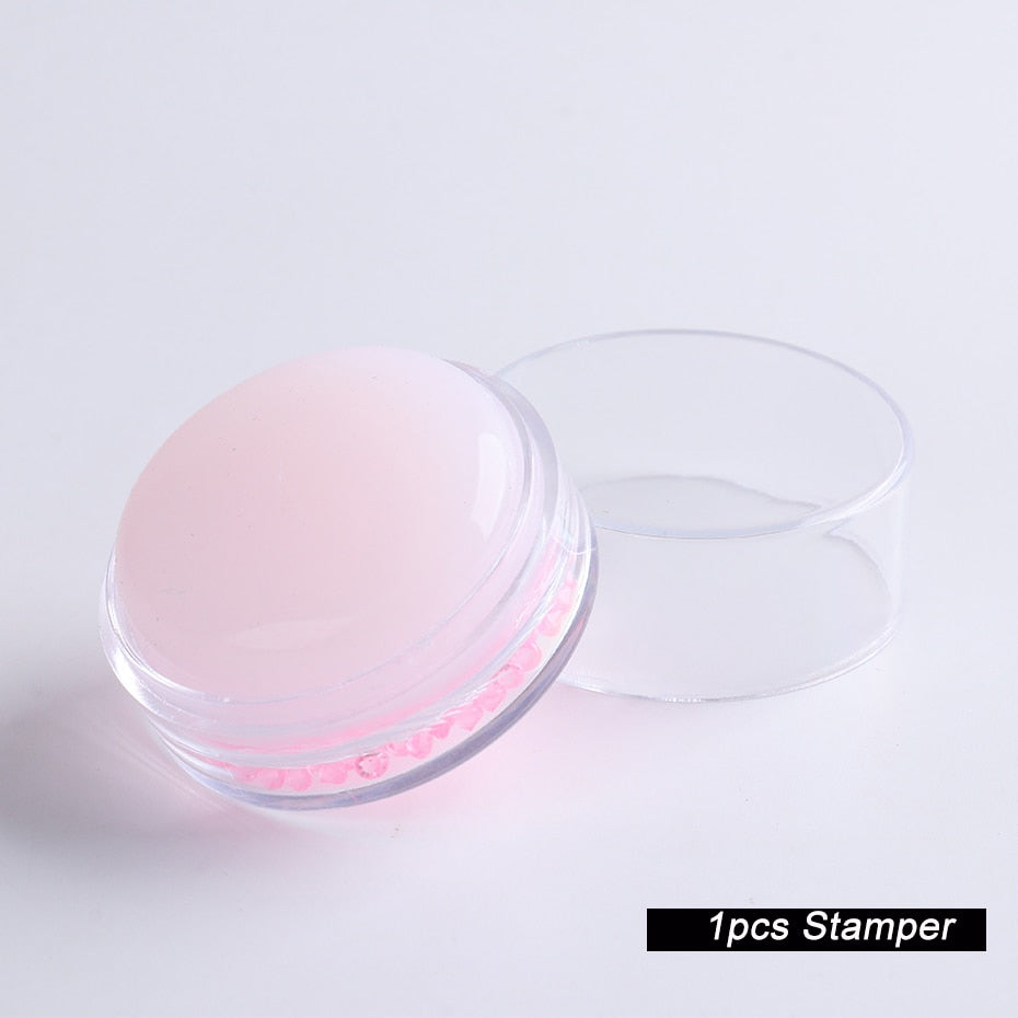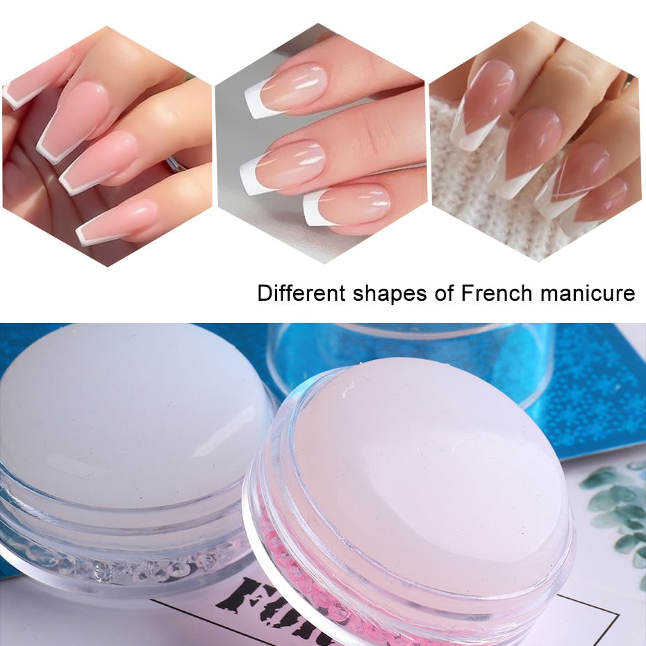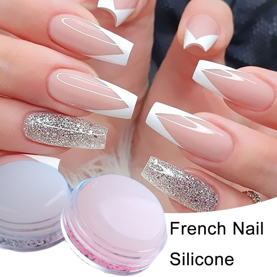 Yeknu French Manicure Nail Silicone Stamp White Pink Jelly Soft Head Gel Polishing Template Decor DIY Stencil Painting Tools NL1947