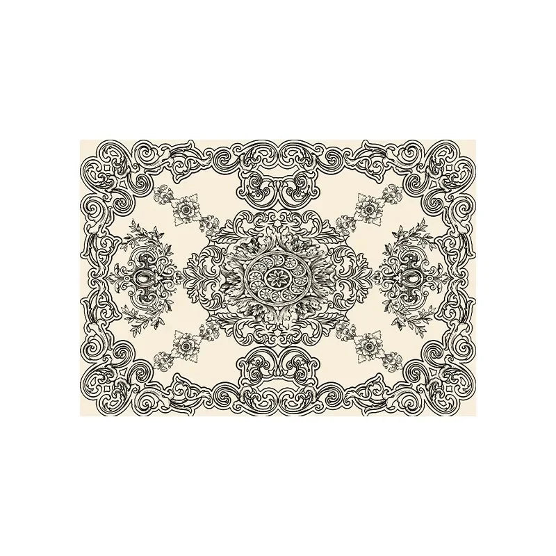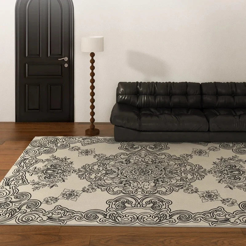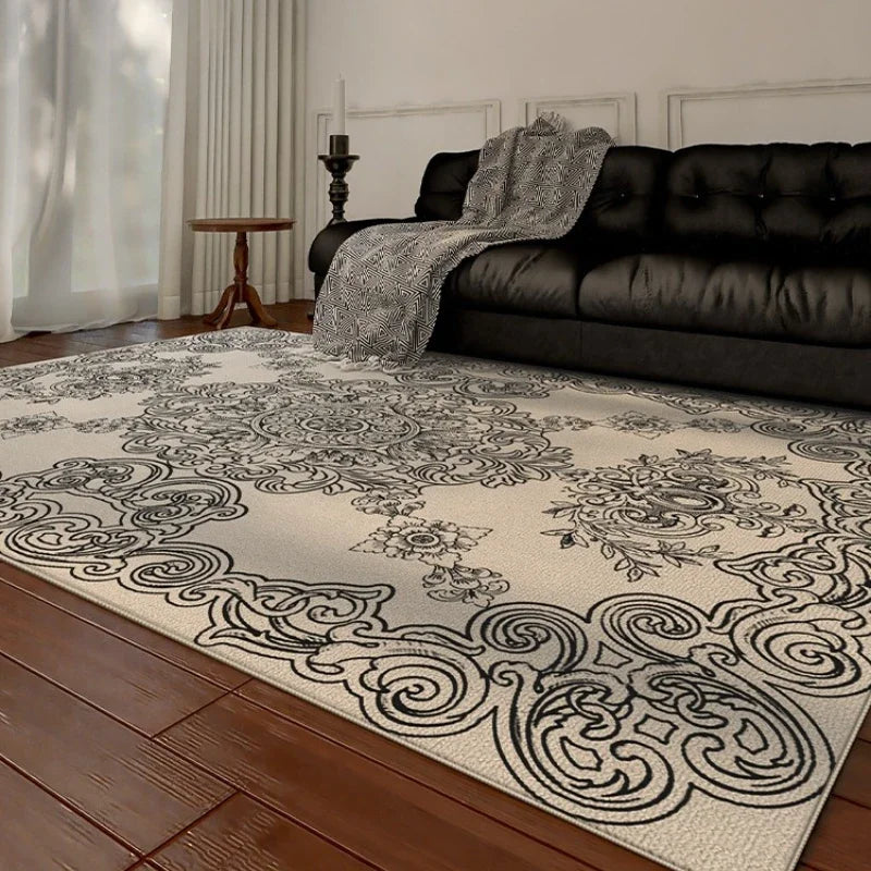 Yeknu French Retro Living Room Large Area Carpet Ethnic Style Bedroom Carpets Black White Home Rug Pattern Luxury Study Easy Care Rugs