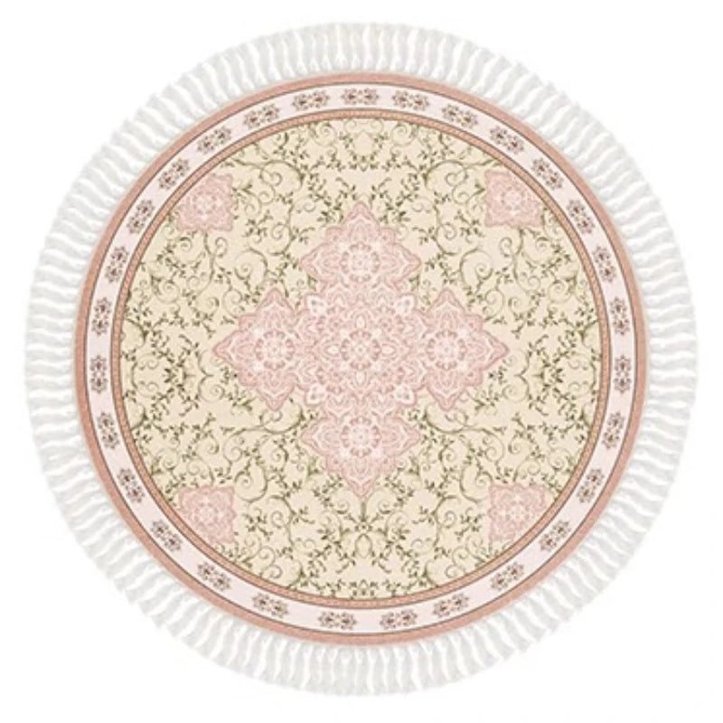Yeknu French Retro Living Room Round Tassel Carpets Ethnic Style Bedroom Carpet Luxury Art Home Rug Floral Geometric Plush Rugs Tapete