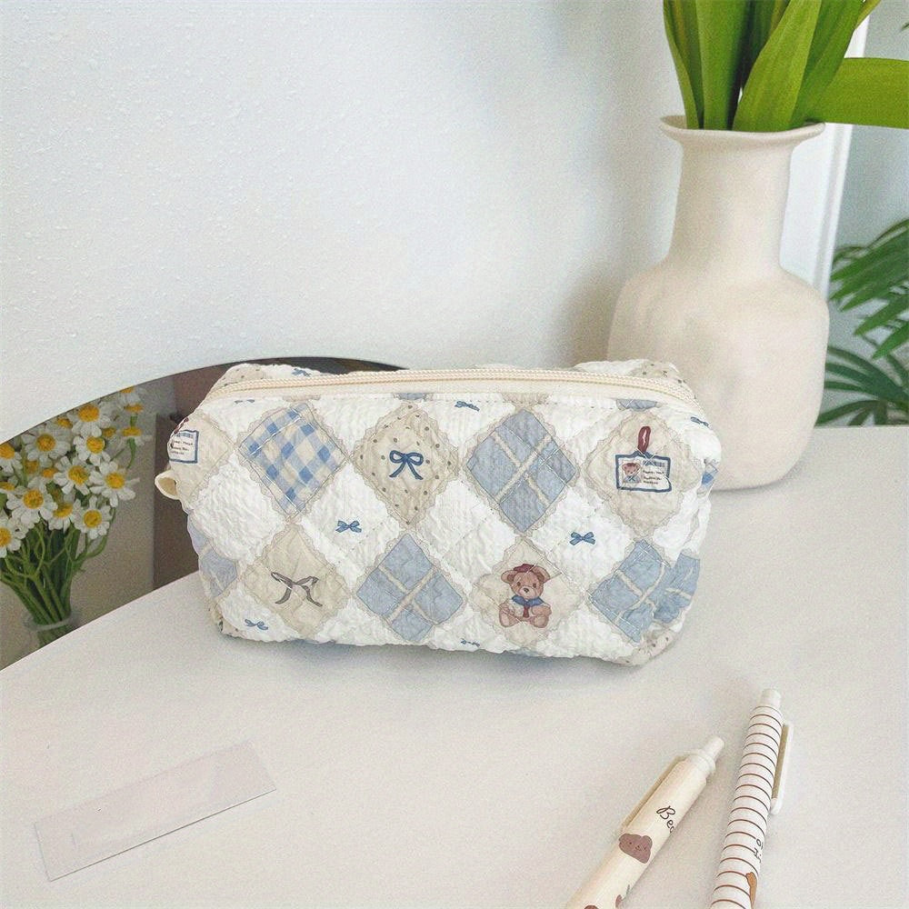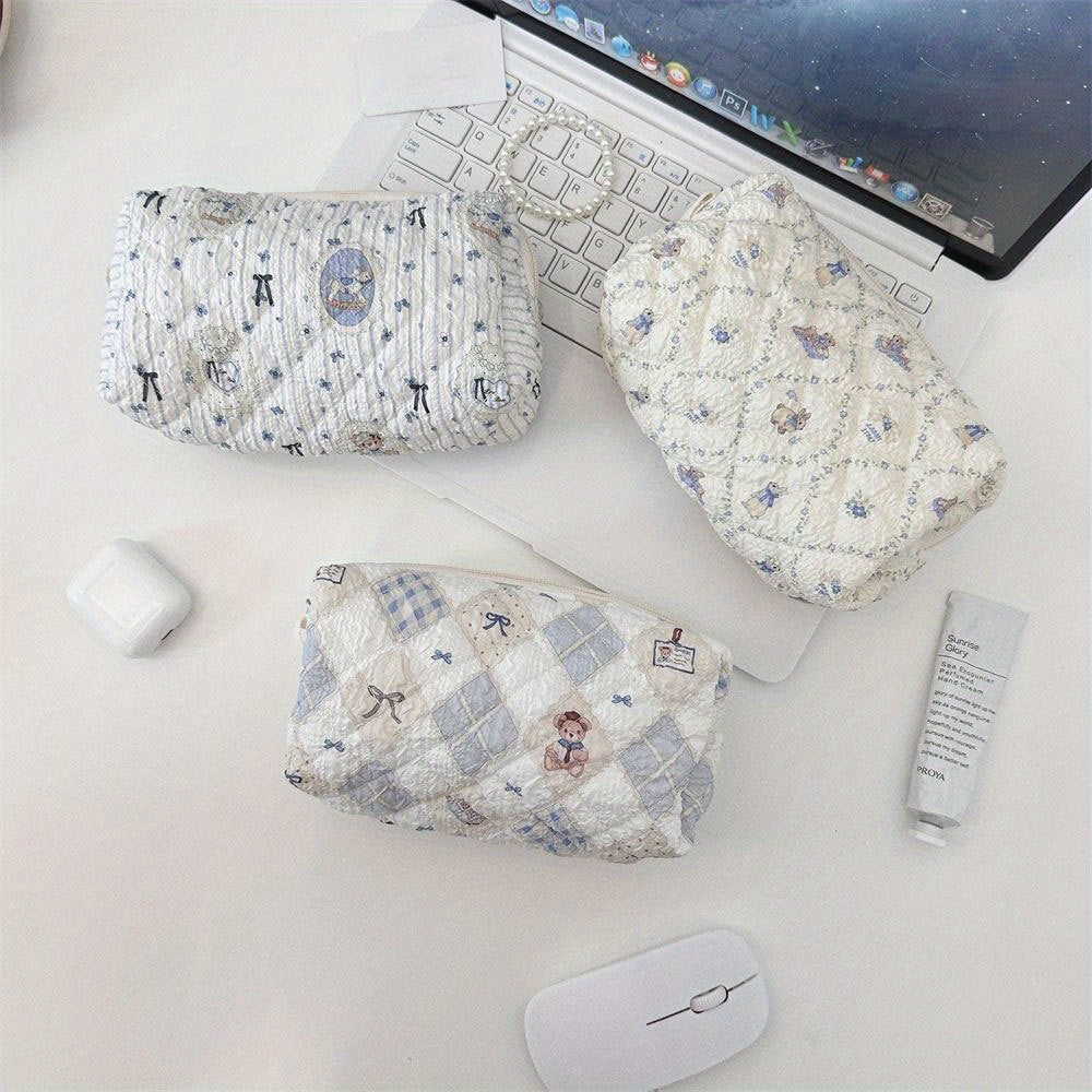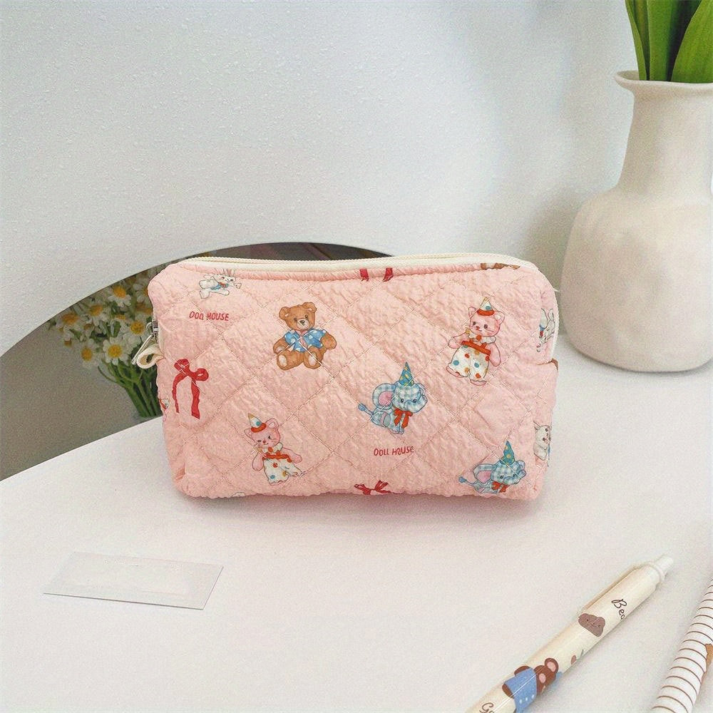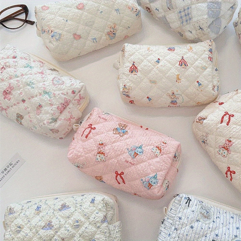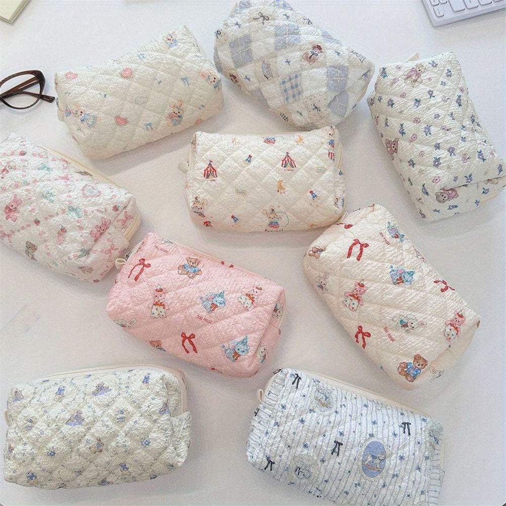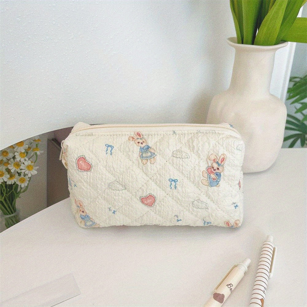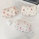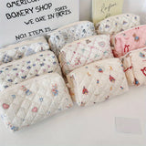 Yeknu Fresh Cosmetic School Office Bag] Large Capacity Pen Bag Creative Floral Fresh Cartoon Print Stationery Bag Cosmetic Bag School Office