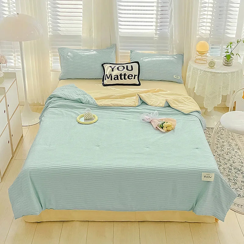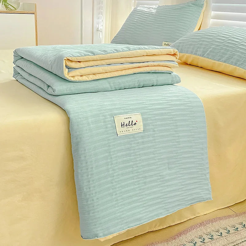 Yeknu Freshness Seersucker Summer Comforter Set Soft Breathable Air Conditioning Quilt Light Duvet Machine Washable Summer Blanket