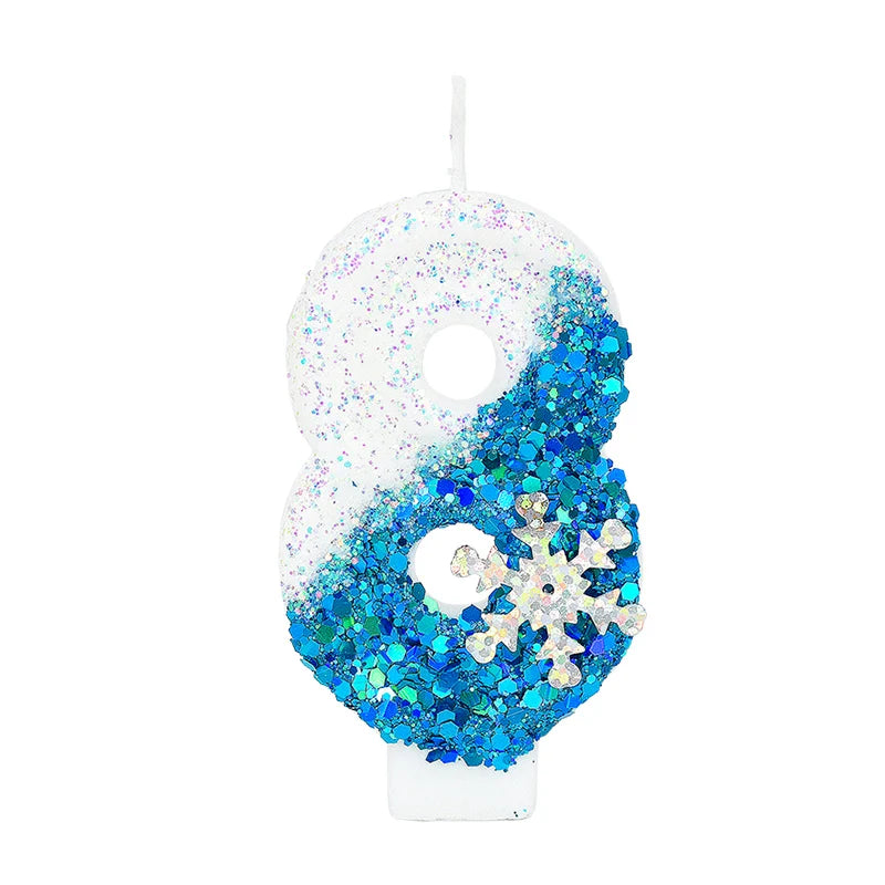 Yeknu Frozen Birthday Candles 0-9 Number Glitter Blue Snowflake Cake Candle Kids Girls Birthday Party Cake Topper Decoration Supplies