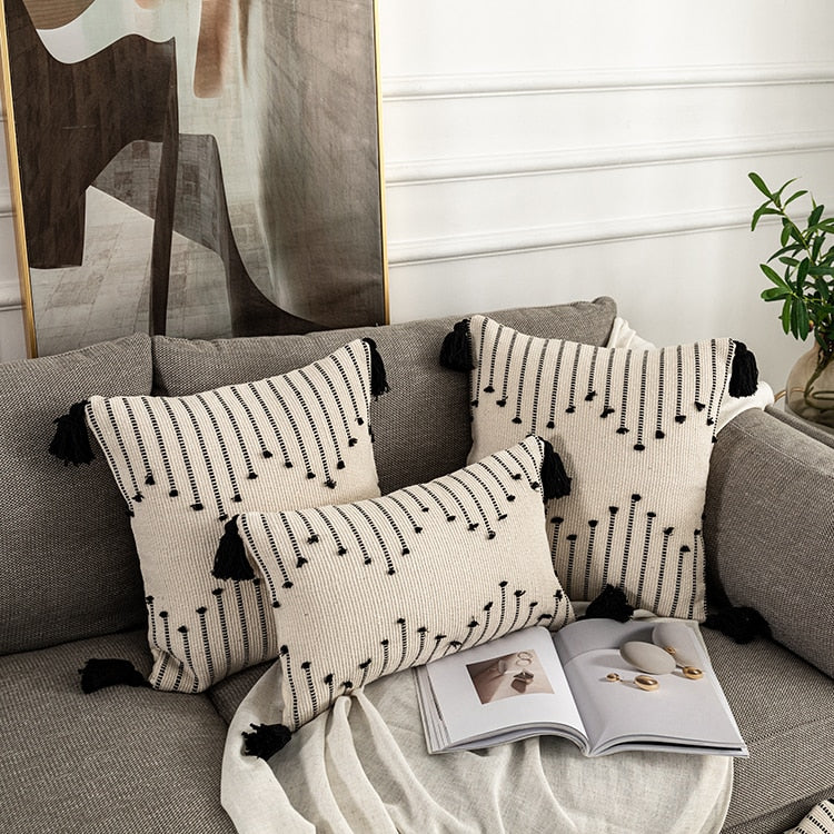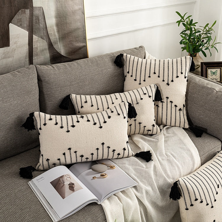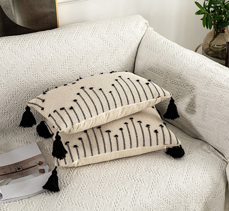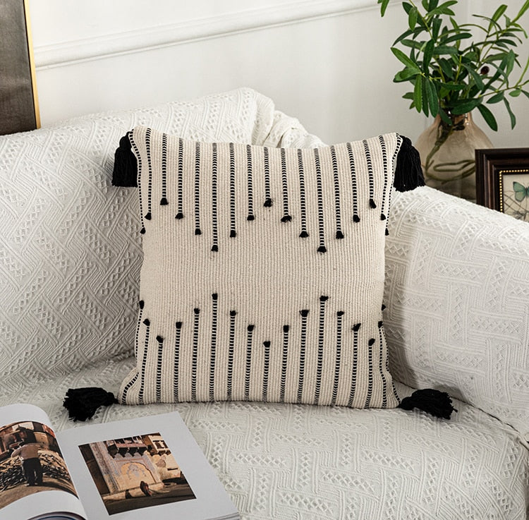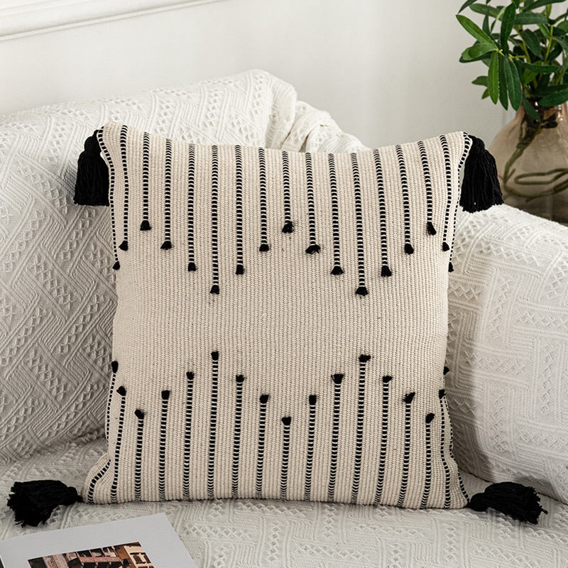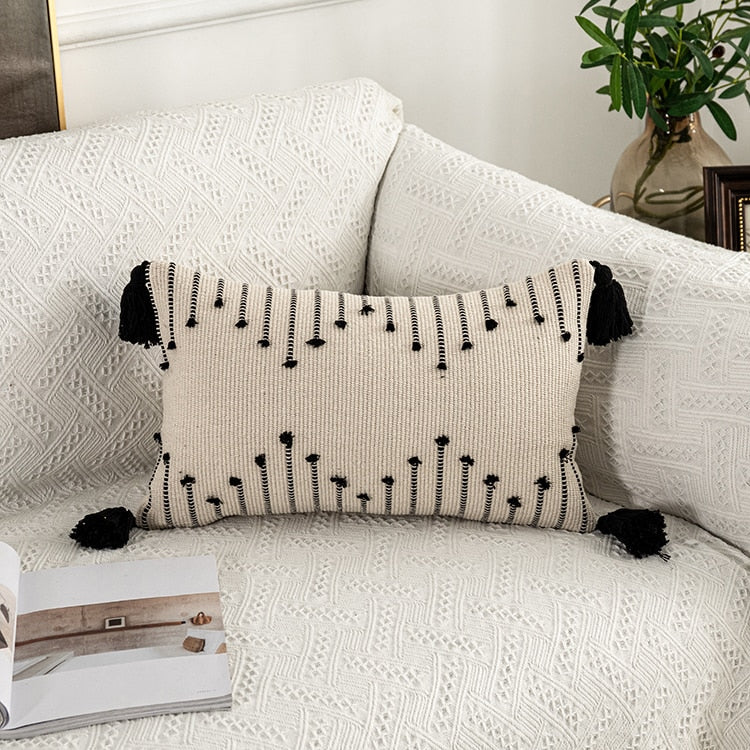 Yeknu Geometric cushion cover Tassels pillow cover Woven Thick Rug Cushion cover For Home decoration Sofa Bed 45x45cm/30x50cm