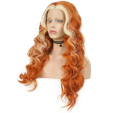 Yeknu Ginger Wig with Blonde Highlights Wig Synthetic Lace Front Wig Loose Deep Long Curly Wavy Hair 13X4 Frontal Wigs for Women Party