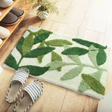 Yeknu Green Leaves Flocking Bath Mat Non-slip Absorbent Microfiber Bathroom Rug Home Entrance Door Mat Super Soft Bath Carpet Tapijt
