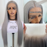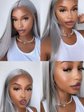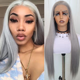 Yeknu Grey Wig Straight Synthetic Lace Front Wig Glueless Lace Wigs for Women Silver Wig Lace Front Synthetic Hair Lace Frontal Gray