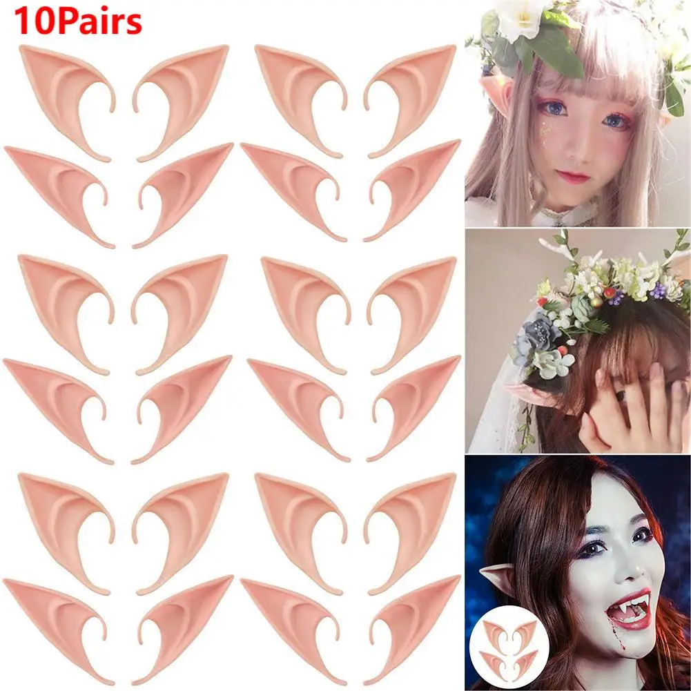 Yeknu Halloween Cosplay Latex Fairy Angel Elf Ears Masquerade Party Costumes Halloween Party Decoration Supplies Photo Props Kids Gift