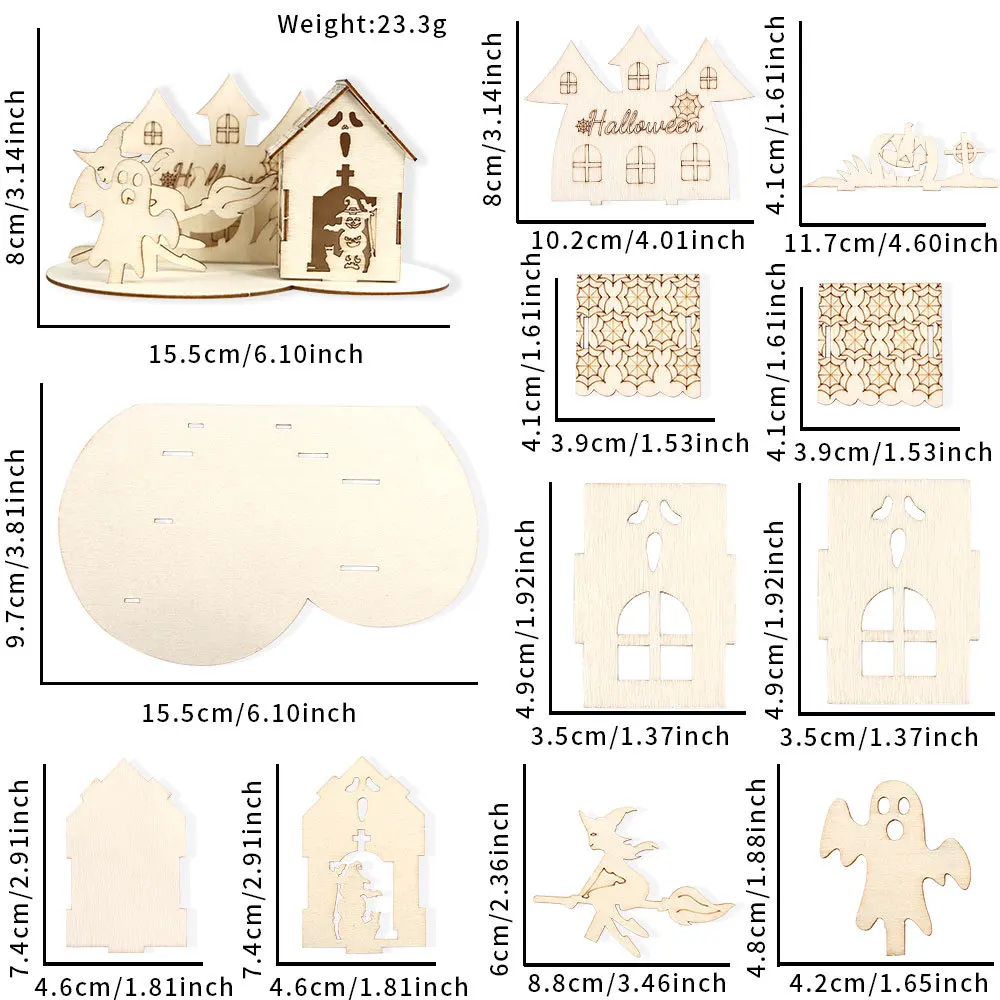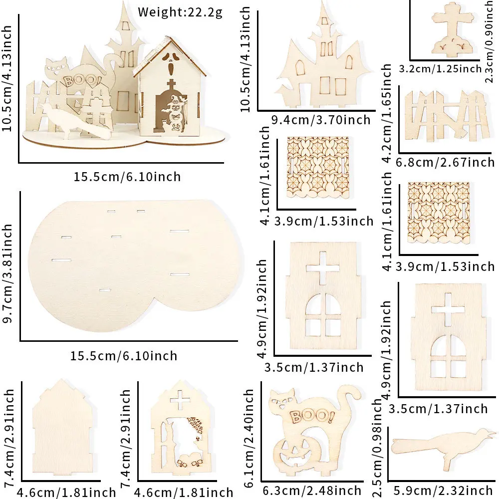Yeknu Halloween Decoration,Wooden Puzzle Ornaments,Halloween Home Decoration,Castle Haunted House DIY Table Decoration