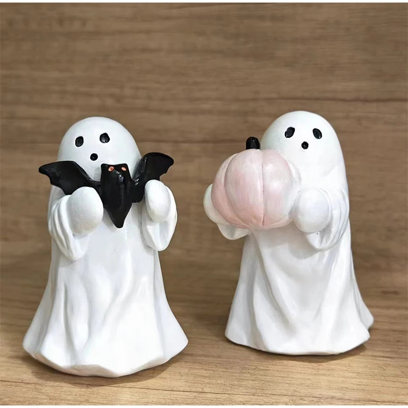 Yeknu Halloween Ghost Ornament Creative Pumpkin Bat Cat Bow Style Resin Ornament Home Living Room Bedroom Office Desktop Decoration