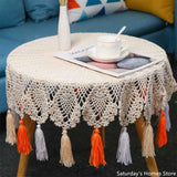 Yeknu Handmade Cutout Cotton Thread Macrame Tapestry Tassel Pendant Wall Hanging Boho Decor Roud Tablecloth Table Decoration