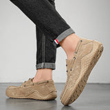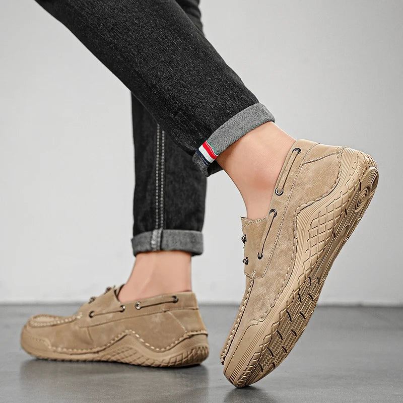 Yeknu Handmade Leather Men Shoes lace up Casual genuine Leather Shoe Men Comfort Walking Shoes Manual soft bottom Shoes men moccasins