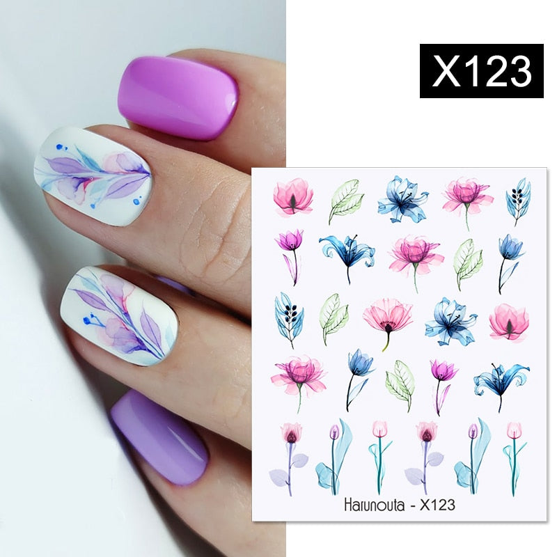 Yeknu Harunouta 1Pc Spring Water Nail Decal And Sticker Flower Leaf Tree Green Simple Summer Slider For Manicuring Nail Art Watermark