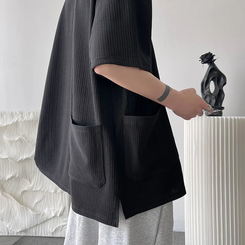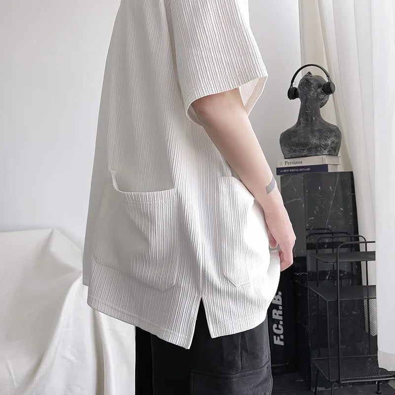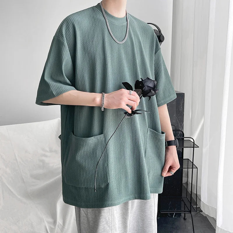 Yeknu High Quality Men Trend Pockets T Shirts Summer Mens Short Sleeve Fashions Male Solid Simple Daily Tees Harajuku T-Shirt