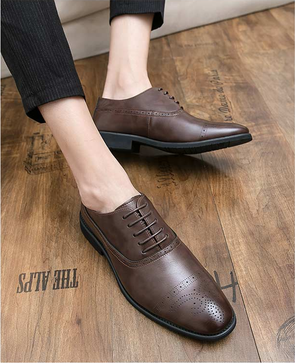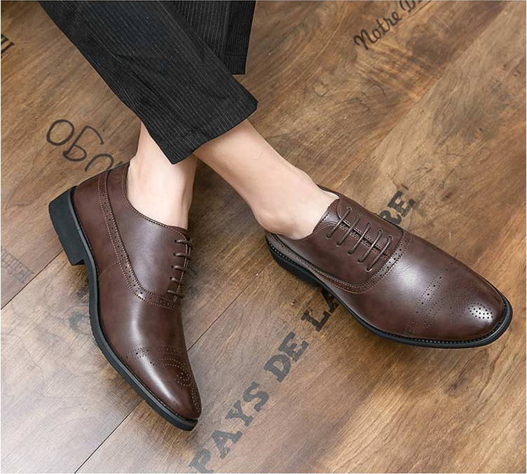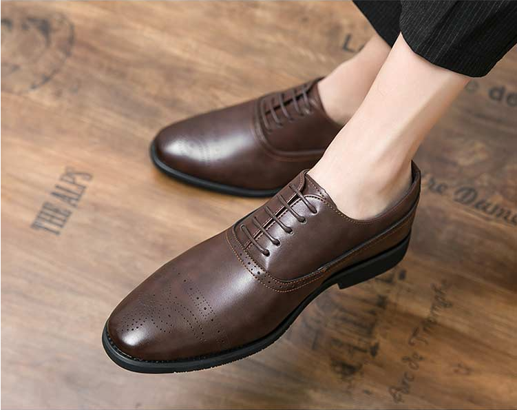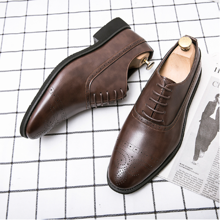 Yeknu High Quality Newest Fashion Men's Dress Shoes Classic Brown Pu Leather Premium Brogue Casual Shoes Zapatos De Hombre AG015