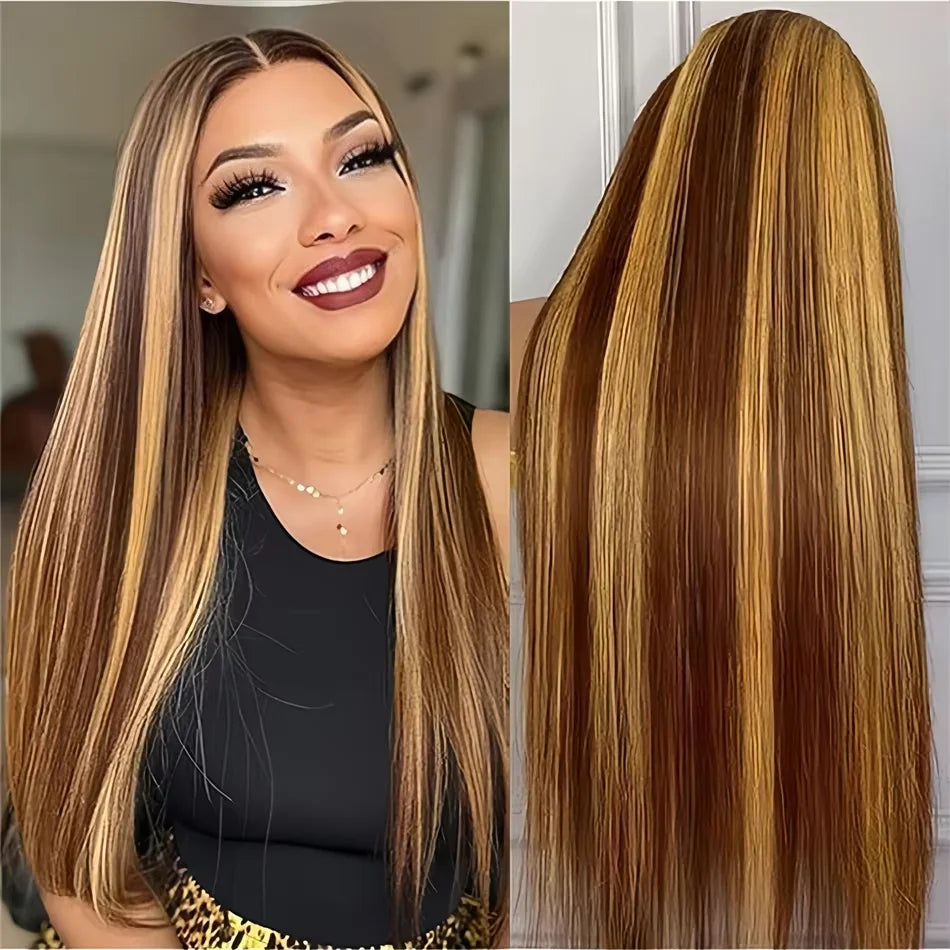 Yeknu Highlight 13X6 Lace Frontal Wig Human Hair Colored 13X4 HD Lace Front Wigs P4/27 Brazilian Preplucked Straight Human Hair Wigs